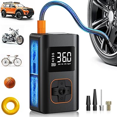 Tire Inflator Portable Air Compressor - 150 PSI Portable Air Pump for Car Tires, Cordless Electric Bike Tire Pump with Digital Pressure Gauge, LED Light for Auto, Motorcycle, Bicycle, Ball